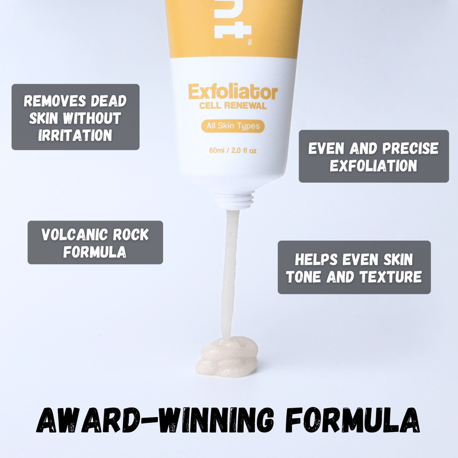 The Cell Renewal Exfoliator uses our award-winning volcanic rock formula to gently slough off dead skin cells and polish away buildup—without stripping your skin barrier. The result? Smoother texture, brighter tone, and healthier-looking skin. Use 2–3 times a week to clear clogged pores, reduce rough patches, and help new skin cells surface naturally for a refreshed, balanced look.