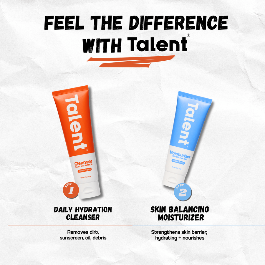 The Talent Starter Set is a no-fuss, two-step routine designed for active men who want clear, healthy skin without the extra steps. Whether you’re heading to the gym, traveling, or just looking for an easy daily routine, this set keeps your skin clean, hydrated, and balanced in under 60 seconds.